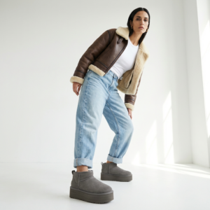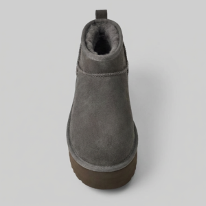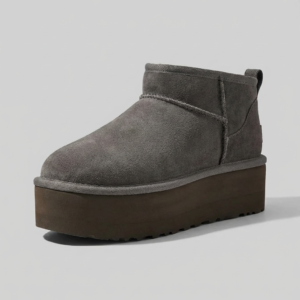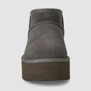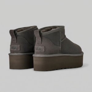 Buty damskie UGG Classic Ultra Mini Platform Brown to botki łączące charakterystyczny design marki z nowoczesną platformą o wysokości około 4 cm. Wykonane z naturalnego zamszu w ciemnobrązowym odcieniu, z wnętrzem wykończonym 100% owczą wełną. Minimalistyczna sylwetka do kostki z podeszwą z lekkiej gumy EVA zapewnia komfort i stabilność. Uniwersalny charakter sprawia, że komponują się zarówno z casualowymi, jak i bardziej eleganckimi stylizacjami.