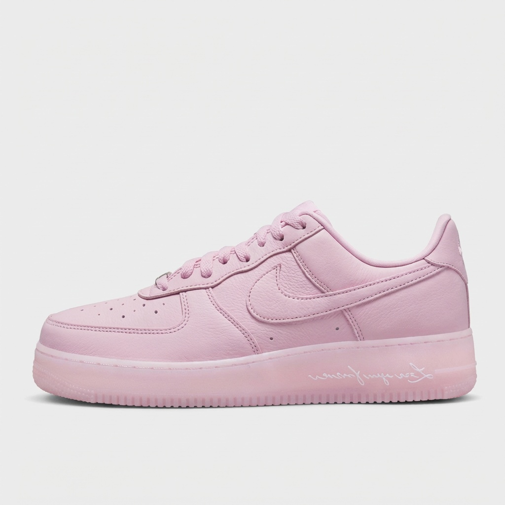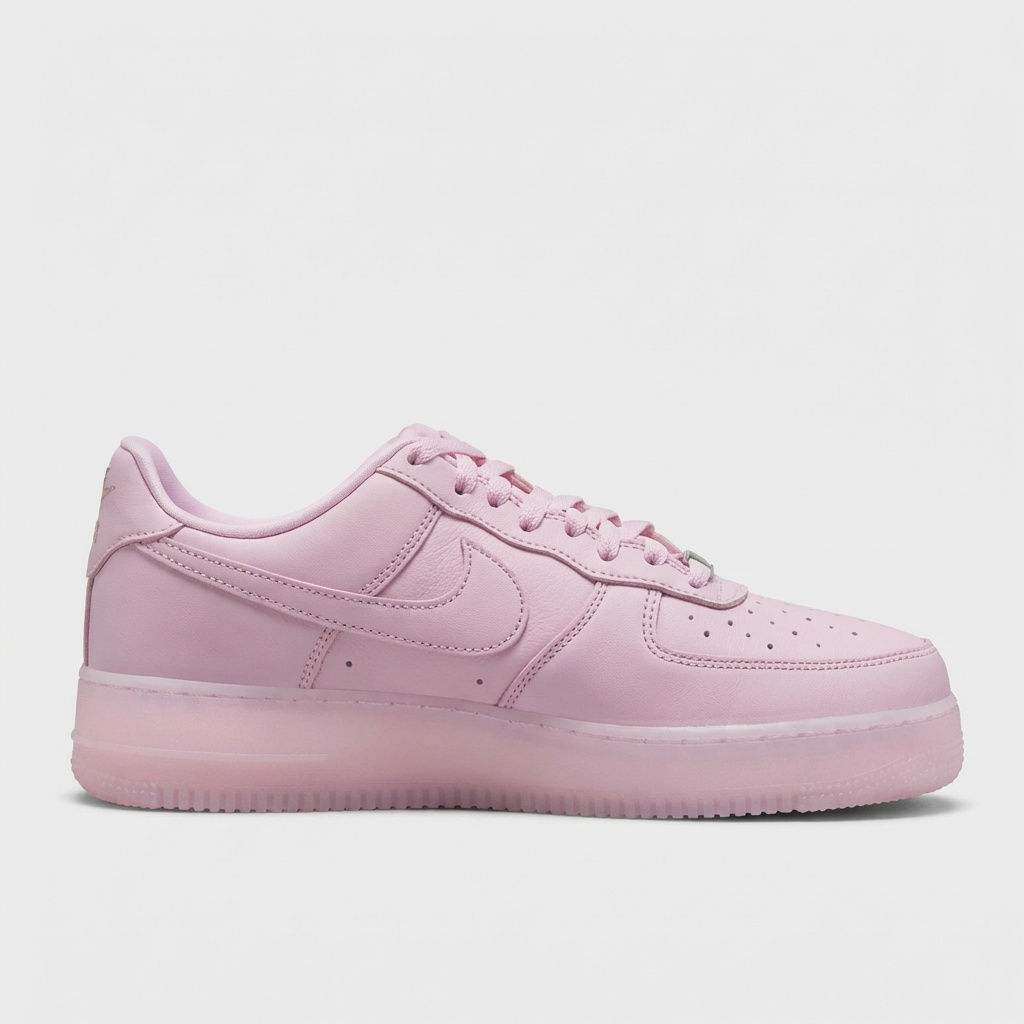Klasyczne sneakersy Nike Air Force 1 w różowej kolorystyce Pink Foam z kolekcji NOCTA Certified Lover Boy. Wykonane ze skóry naturalnej i materiałów tekstylnych. Charakterystyczna podeszwa z technologią Air oraz perforacje na nosku.