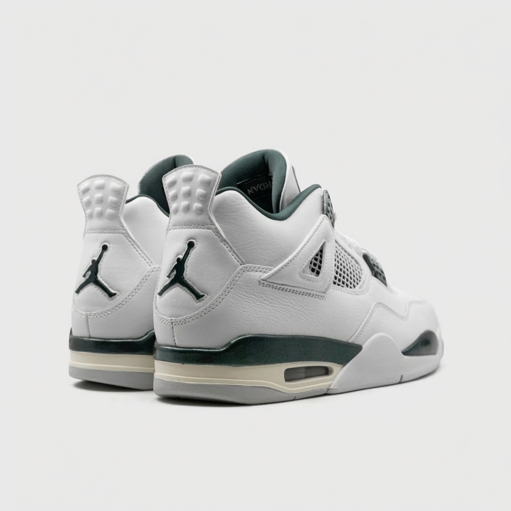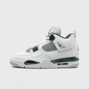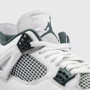 Air Jordan 4 Oxidized Green to klasyczna wersja legendarnego modelu w świeżej kolorystyce. Białe wykonanie z skóry uzupełniają zielone elementy na pięcie, ozdobne panele i detale. Model zachowuje wszystkie charakterystyczne cechy projektu Tinkera Hatfielda z 1989 roku.