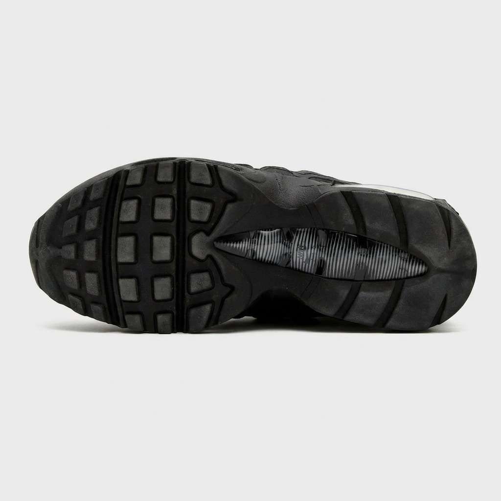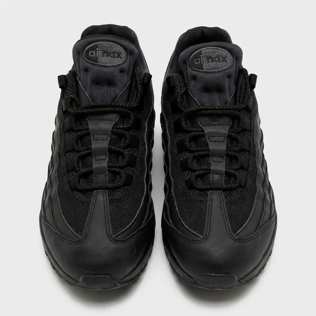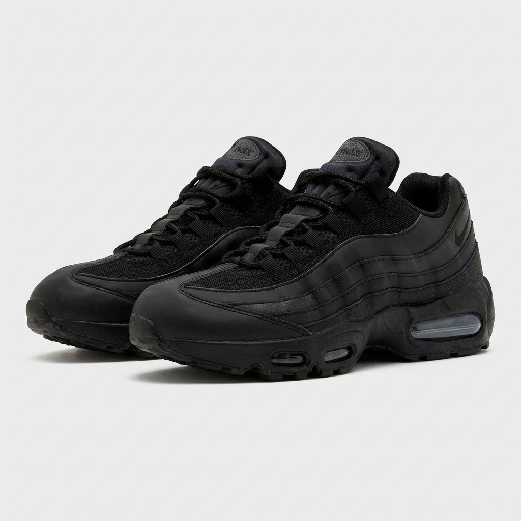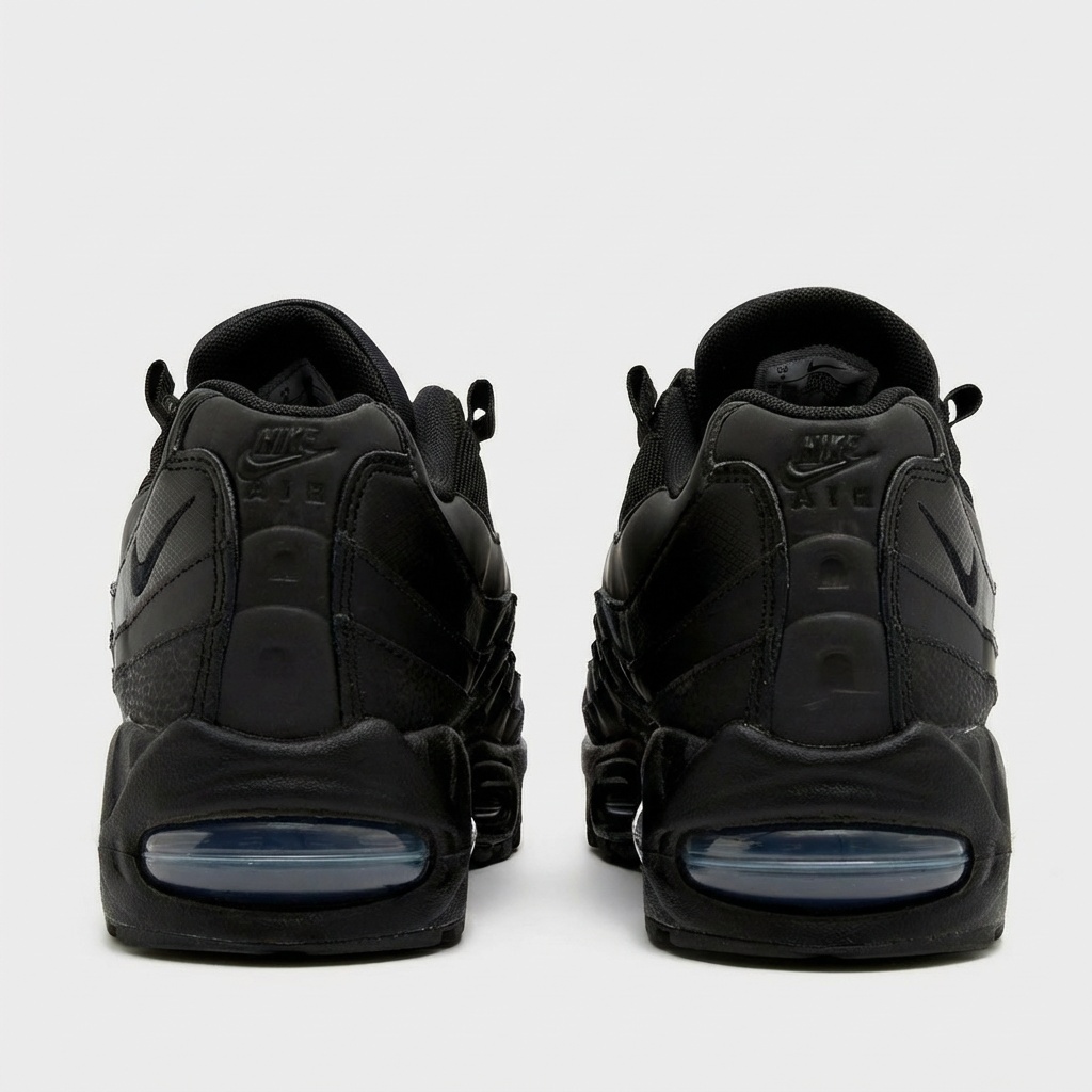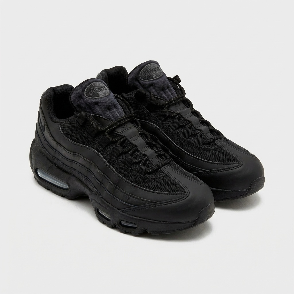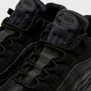 Sneakersy NIKE Air Max 95 OG łączą ikoniczny design z lat 90-tych z nowoczesną technologią amortyzacji. Model wyróżnia się charakterystycznymi warstwowymi panelami oraz widoczną jednostką Max Air w tylnej części podeszwy. Wykonane w całkowicie czarnej kolorystyce z subtelnymi akcentami antracytowymi.