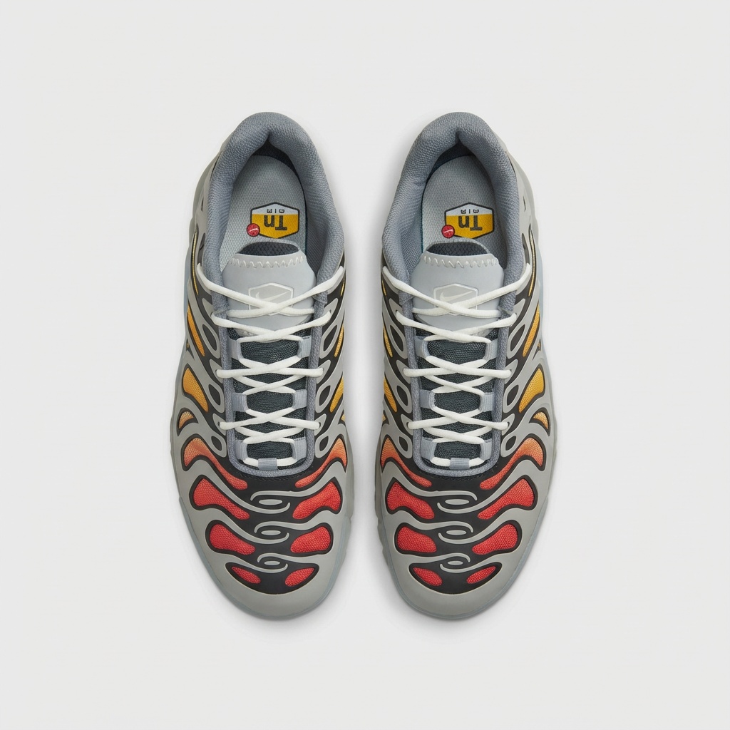 NIKE Air Max Plus Drift to model łączący klasyczną sylwetkę Air Max Plus z ekspresyjnym designem. Charakterystyczne linie przypominające płomienie przechodzą przez całą cholewkę w gradiencie od niebieskiego, przez żółty i pomarańczowy, po czerwony. Podeszwa wyposażona w technologię Air Max zapewnia amortyzację podczas każdego kroku.