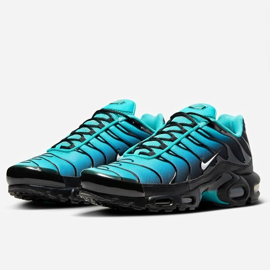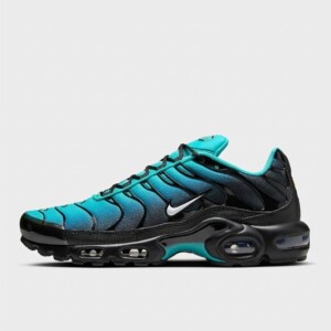 Nike Air Max Plus TN w wersji Light Retro łączy turkusowy materiał tekstylny z czarnymi elementami z tworzywa sztucznego. Charakterystyczne linie TPU na cholewce tworzą dynamiczny wzór inspirowany anatomią stopy. System amortyzacji Air Max w podeszwie środkowej został zaprojektowany z myślą o maksymalnym komforcie podczas ruchu.