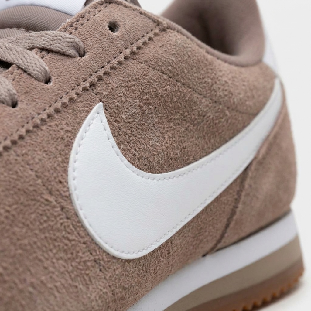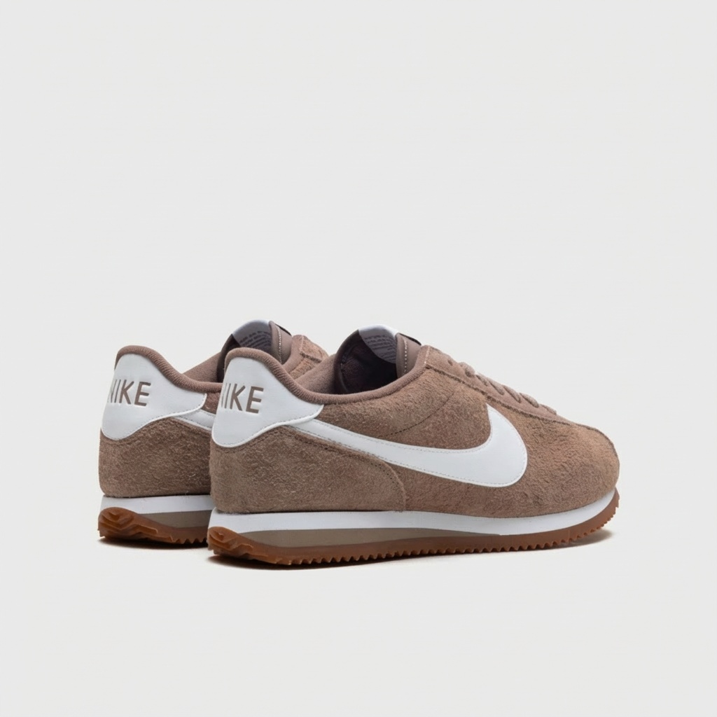 Nike Cortez Vintage w wersji Medium Curry to klasyczne sneakersy w ciepłym, brązowym odcieniu. Cholewka wykonana z wysokiej jakości skóry zamszowej kontrastuje z białym logo Swoosh i elementami w kolorze białym. Model wyposażony w tradycyjną gumową podeszwę z charakterystycznym wzorem.