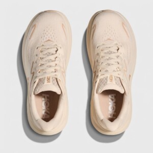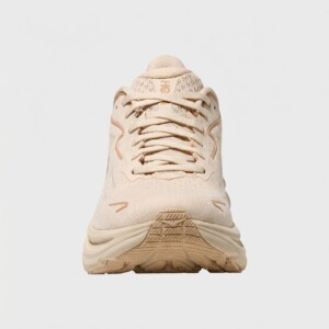 Buty HOKA Clifton 10 w kolorze Vanilla to model biegowy charakteryzujący się wysoką podeszwą środkową typową dla marki HOKA. Wykonane z oddychającego materiału tekstylnego z wzmocnieniami syntetycznymi, oferują stabilność podczas treningów biegowych. Beżowa kolorystyka nadaje im wszechstronny charakter, pasujący do różnych strojów sportowych.