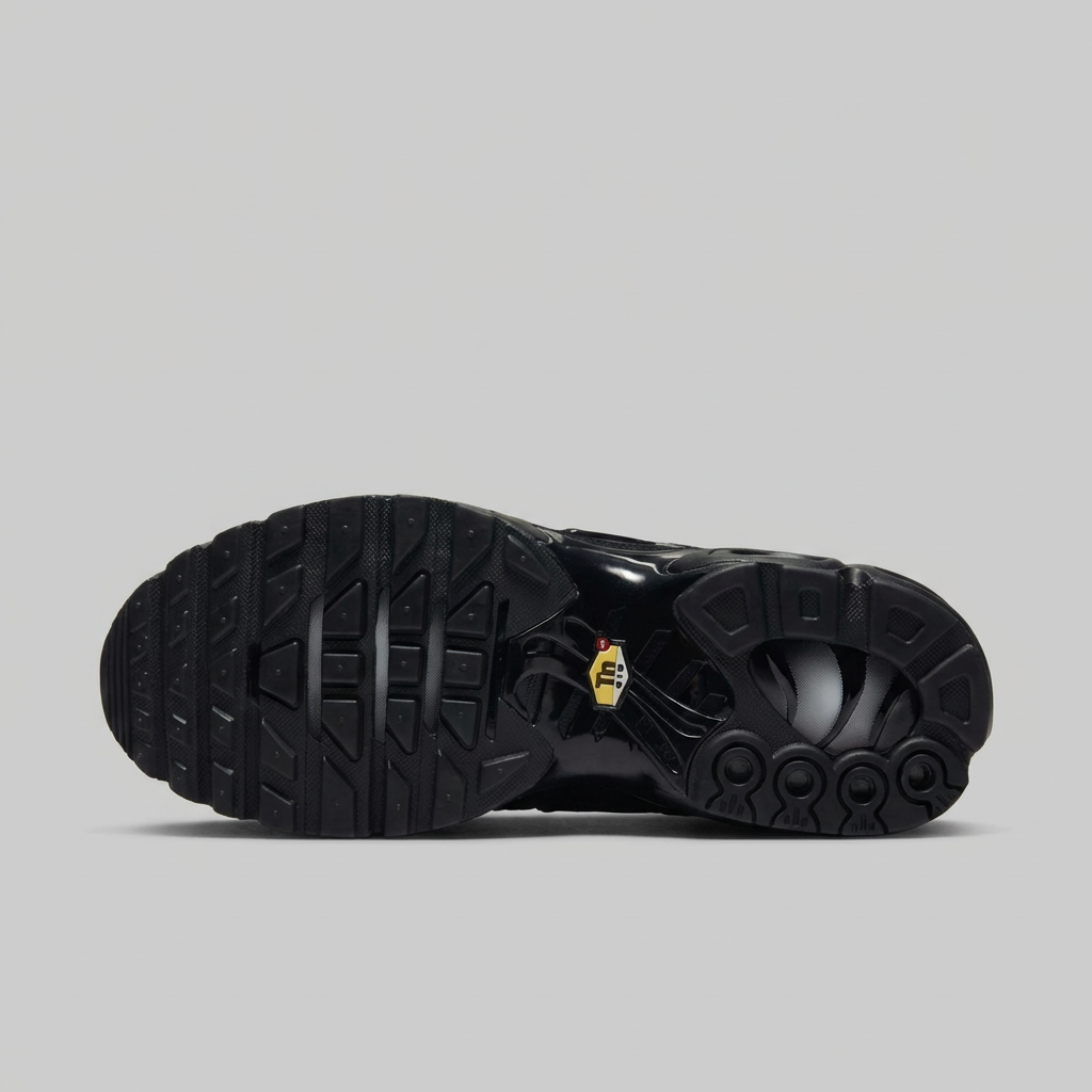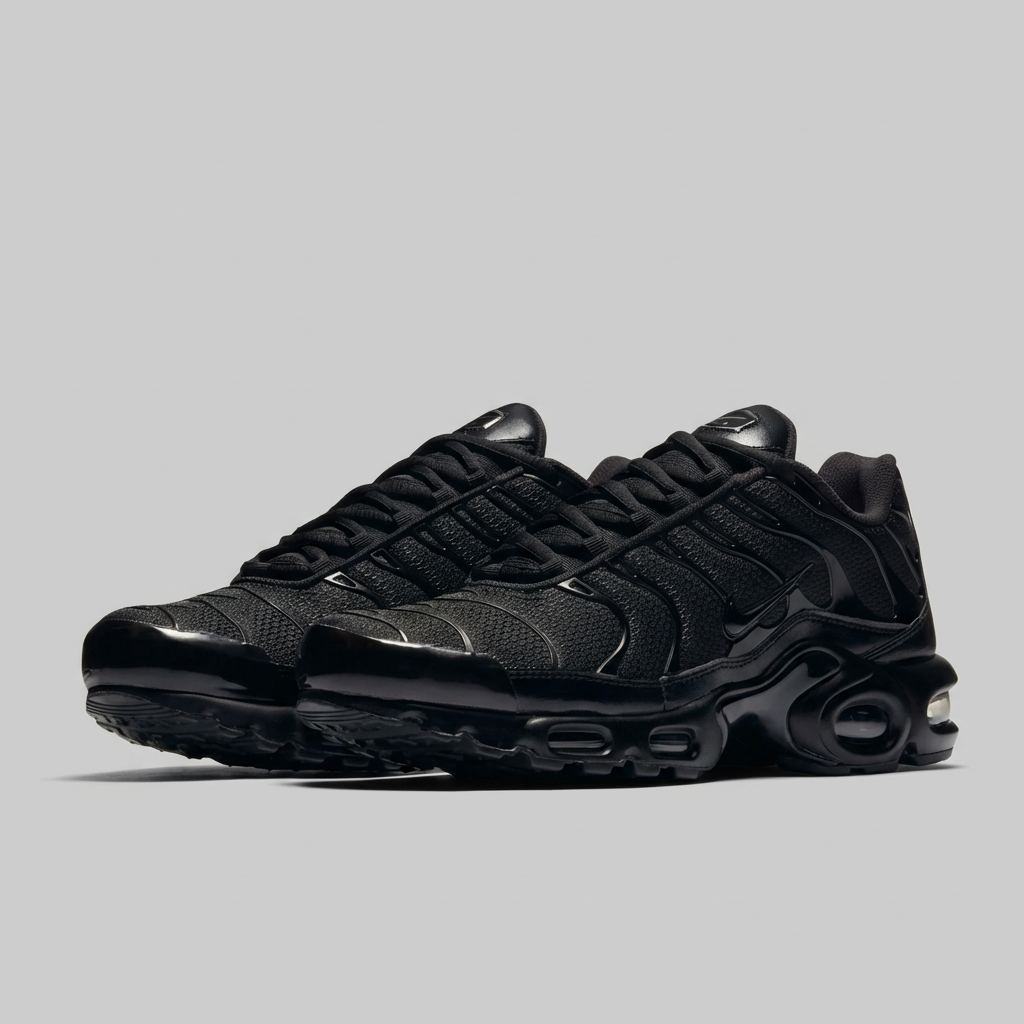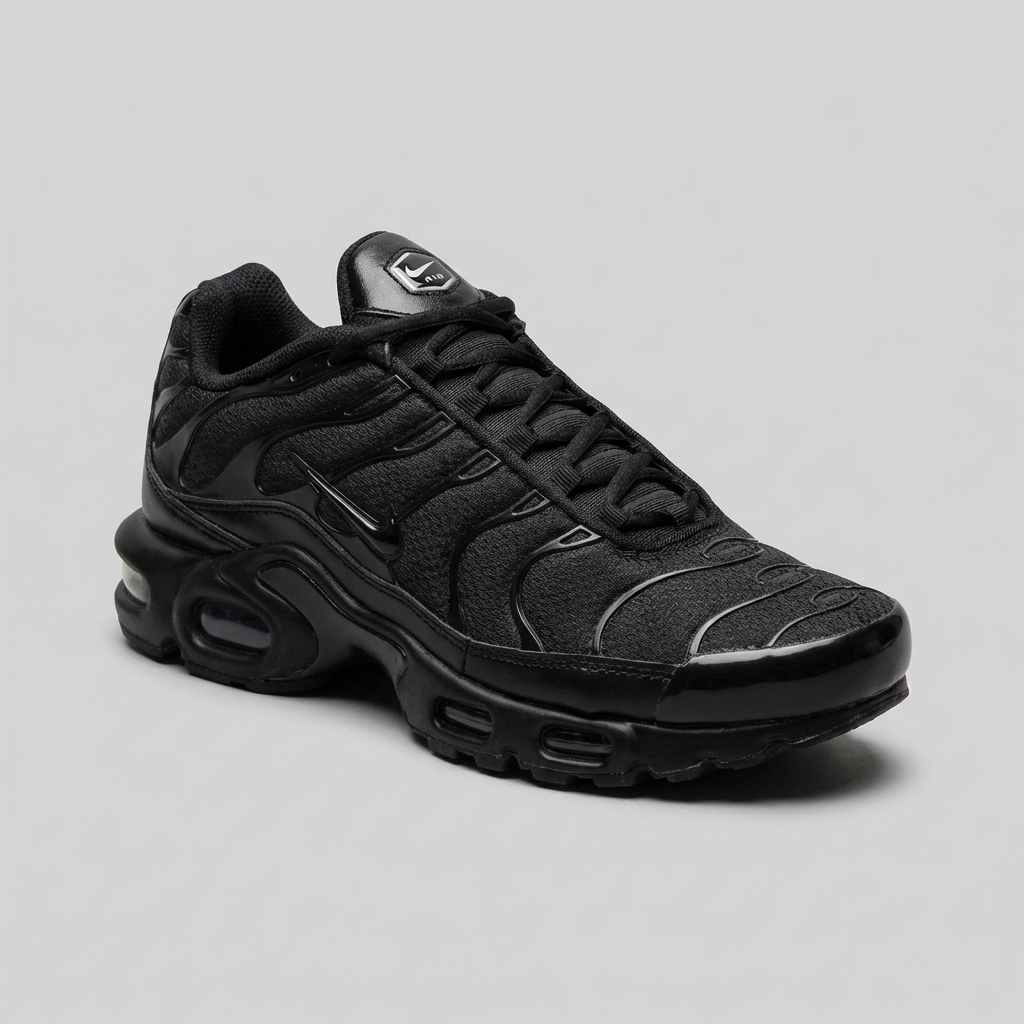 Buty sportowe Nike Air Max Plus Triple Black to jedna z najbardziej rozpoznawalnych sylwetek w historii sneakersów. Cholewka wykonana z wysokiej jakości materiałów tekstylnych oraz syntetycznych wstawek z charakterystycznymi liniami TPU. Agresywny, futurystyczny design inspirowany naturą z liniami przypominającymi kręgosłup rekina. Pełnowymiarowa kapsuła Air Max zapewnia wyjątkową amortyzację i komfort użytkowania. Całkowicie czarna kolorystyka sprawia, że doskonale komponują się z różnymi stylami streetwear i casual.