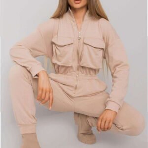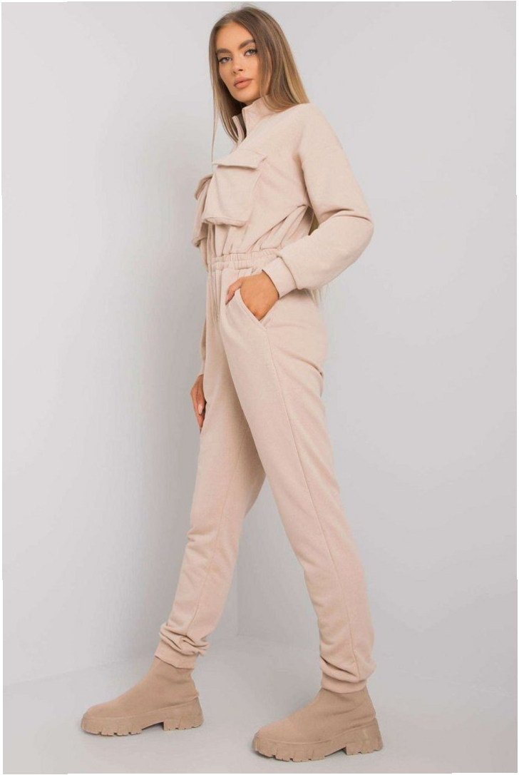 Beige Cotton Zip Jumpsuit. Perfect for Everyday Wear.