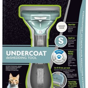 The FURminator de-shedding tool for short-haired cats is specifically crafted for breeds with shorter fur, such as the British Shorthair, Siamese, small breeds, and Bengal. This lightweight grooming tool, weighing 200 g and measuring 133mm in width, 64mm in length, and 228mm in height, ensures comfortable handling. Ideal for use in spring and summer, the FURminator not only aids in daily grooming but also promotes the health of your pet’s skin and coat, making it suitable for cats of all ages.