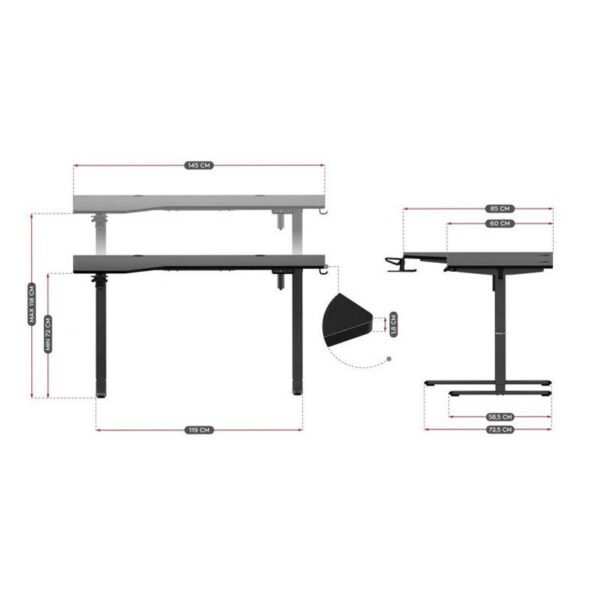 The Huzaro Gaming Desk Hero 9.1 seamlessly blends functionality and modern design, making it perfect for both gaming enthusiasts and those working from home. It is equipped with ergonomic features like adjustable height settings, as well as various accessories such as a backpack hook, cup holder, and headset hook. Constructed from durable metal and MDF, it can support up to 80 kg. Additionally, built-in cable grommets and an LED panel enhance its spacious, contemporary look, all while its sleek black finish ensures it complements any decor style.