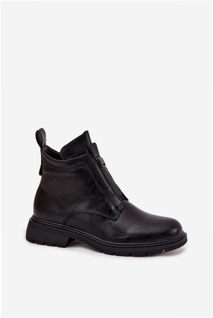 Model Roselle RMR2501-1 to damskie botki wykonane z trwałej skóry ekologicznej o gładkiej fakturze. Konstrukcja osadzona na płaskim obcasie o wysokości 4 cm i cholewka mierząca 12,5 cm zapewniają stabilność podczas chodzenia. Wnętrze oraz wkładka pokryte są kocem obuwniczym o właściwościach termoizolacyjnych, utrzymując ciepło w chłodniejsze dni. Górna część cholewki wykończona jest subtelnym detalem ozdobnym, a zapięcie na zamek umieszczone od wewnętrznej strony ułatwia zakładanie i dopasowanie. Podeszwa wykonana z tworzywa syntetycznego cechuje się dobrą elastycznością i odpornością na ścieranie. Model charakteryzuje się klasyczną, miejską sylwetką, odpowiednią do codziennego użytkowania w niskich temperaturach.