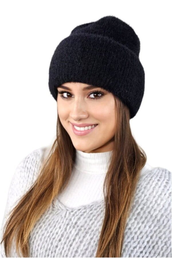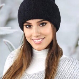 The BENITA hat by Kamea is a black winter hat with a turned-up cuff, perfect for sporty and casual styles.