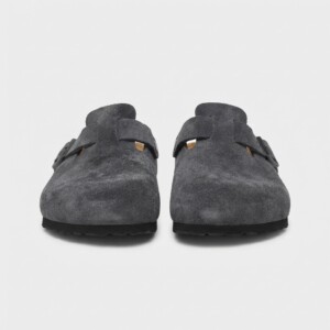 Klapki Boston SFB łączą minimalistyczny design z funkcjonalnością zamkniętego palca. Wykonane z miękkiego zamszu w odcieniu szarości, wyposażone w regulowaną metalową klamrę oraz charakterystyczną podeszwę z naturalnego korka. Model oferuje wygodę noszenia dzięki anatomicznie wyprofilowanej wkładce dopasowującej się do kształtu stopy.