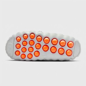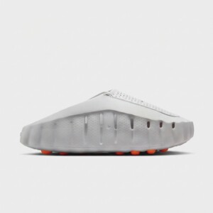 Klapki Nike Mind 001 to modelowa propozycja łącząca komfort z futurystyczną estetyką. Wykonane z lekkiej pianki syntetycznej w odcieniu Light Smoke Grey, wyróżniają się perforowaną konstrukcją górnej części oraz transparentnym okienkiem w podeszwie. Zaawansowana technologia amortyzacji i ergonomiczny kształt zapewniają wygodę podczas całodziennego noszenia.