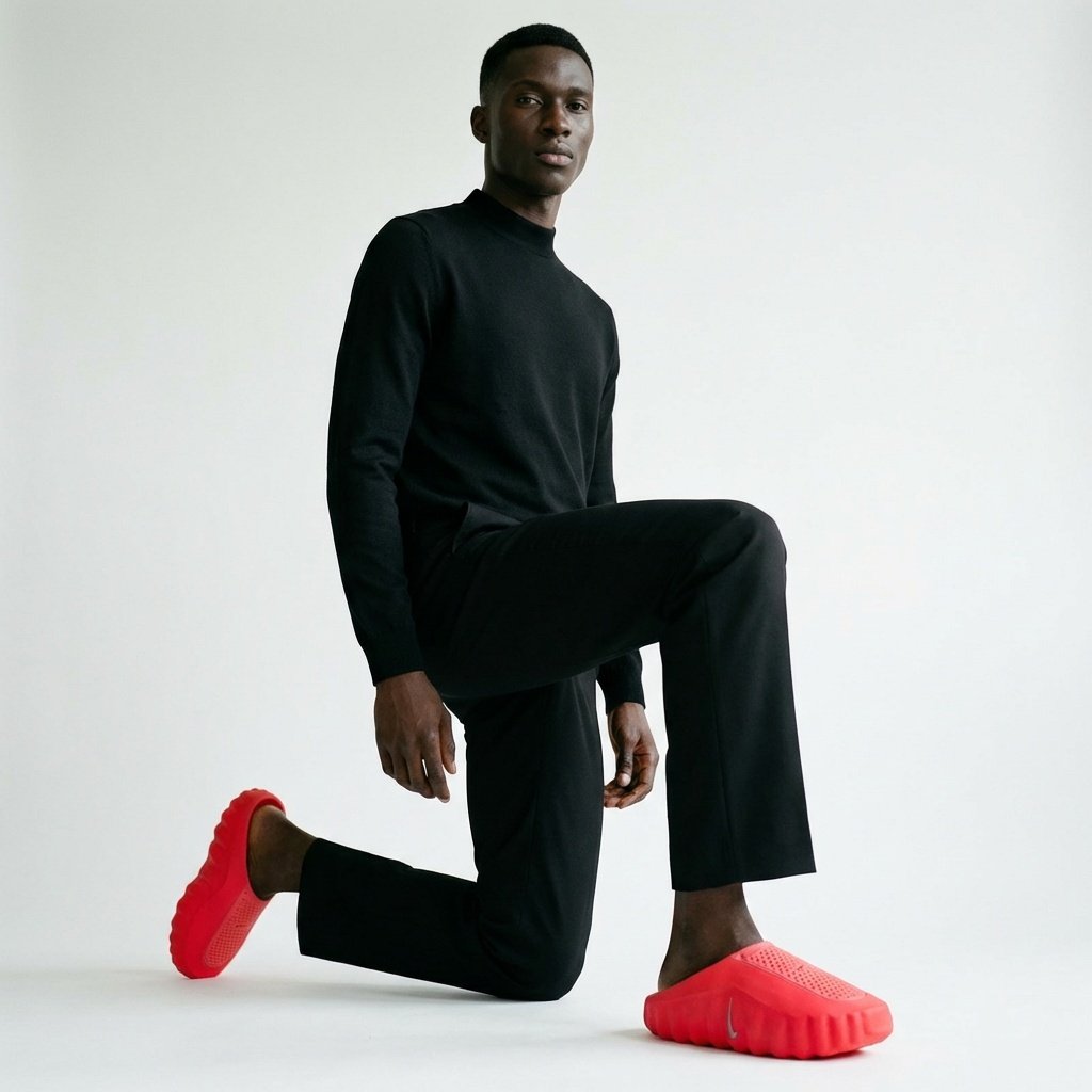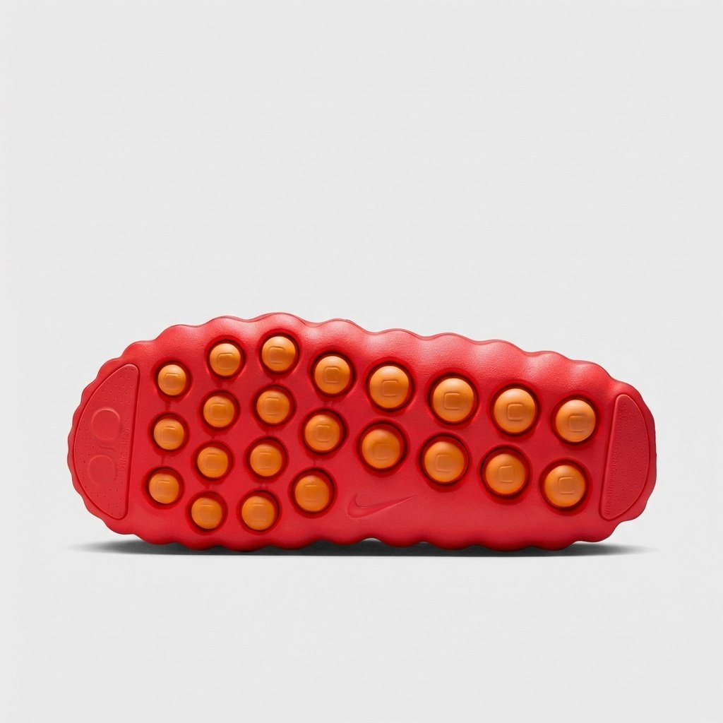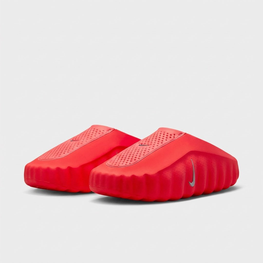 Klapki Nike Mind 001 wyróżniają się intensywnym czerwonym kolorem Solar Red i futurystyczną sylwetką. Perforowana wkładka zapewnia wentylację stóp, a rzeźbiona podeszwa zewnętrzna z wypustkami gwarantuje przyczepność. Konstrukcja z pianki EVA łączy lekkość z trwałością.