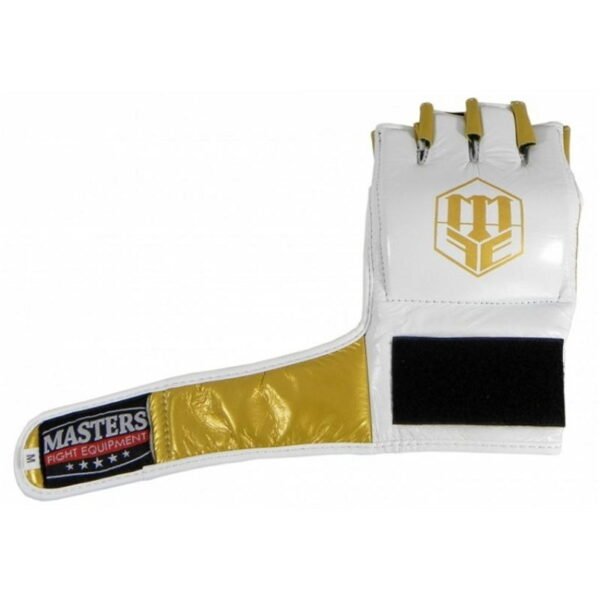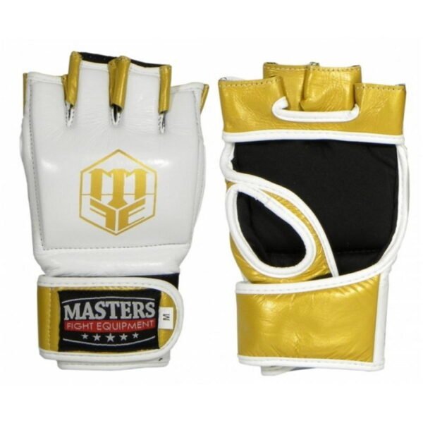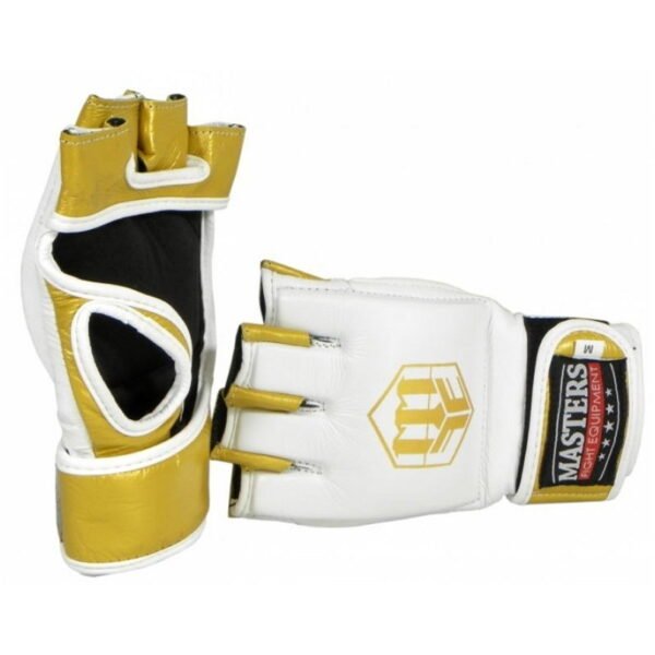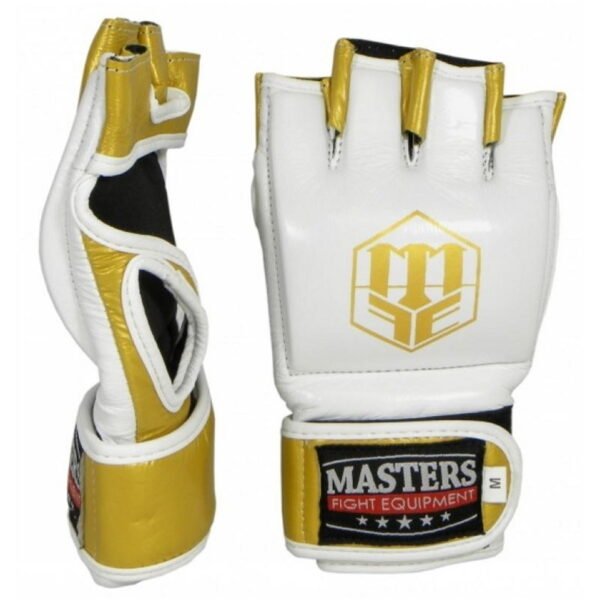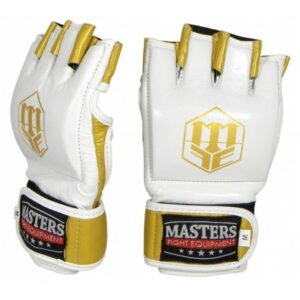 The Masters MMA Gloves MMA-GF 01281-0508M feature a classic cut and simple shape, ensuring high comfort for the user. The interior is lined with a pleasant lining that effectively absorbs sweat. The gloves have a manually glued cushioning insert made of 2 cm foam. The design offers excellent wrist protection due to the wide reinforcing strap. Model GF-White is made of genuine leather, with an unbuilt thumb allowing for improved movement freedom.