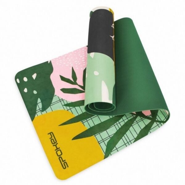 Mata Spokey Home Jungle __EMPTY__VALUE__ SPOKEY Home Jungle exercise mat: It was made of microfiber suede from above and thermoplastic rubber from below, thanks to which it is very pleasant to the touch and non -slip, prevents sliding on the surface and gives excellent depreciation and safety during exercise. It is resistant to damage and easy to clean, has a transport strap in the set. Maximum training comfort at home? Bet on the Spokey Home Jungle exercise mat, which, thanks to the unique combination of materials, will become your favorite companion during stretching exercises, fitness, physiotherapy, as well as when performing all asanas – regardless of how to practice yoga. The use of non -slip TPE combined with microfiber suede makes the mat have excellent grip, is extremely pleasant to the touch and easy to clean! Practice makes the SPOKEY Home Jungle master is a unique mat. It is large (183 x 61 cm), thin (0.4 cm) and, above all, non -slip. This combination works perfectly with the most intense exercises and demanding asanas. The external material absorbs sweat, thus increasing its adhesion. The SPOKEY Home Jungle training mat prevents sliding on the surface and gives excellent cushioning and safety during exercise. The combination of thermoplastic rubber and microfiber suede use of the home jungle microfiber mat makes it easy to properly take yoga positions and gives stabilization and balance during home exercises. It also works for pilates and physiotherapy. It is a material that has amazing absorbency and is resistant to tear or other damage. What’s more, it is distinguished by excellent breathable properties. Suede made of microfiber is not only pleasant to the touch, but also very easy to clean. Just use a wet cloth. Home Jungle – a collection for your home gym, a beautiful design in combination with the quality of workmanship will make the Spokey Home Jungle mat your firm favorite. Thanks to it, the exercises are safer and easier to do! The latest Home Jungle collection is a combination of quality and functionality as well as mysterious, plant motifs, which is the best equipment of every home gym. Technical data: Material: Imitation of suede + TPE (thermoplastic rubber) Non -slip structure Size: 183 x 61 cm thick: 4 mm cleaning method: manually, using a wet cloth included in the set: Transfer strap