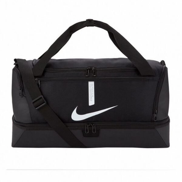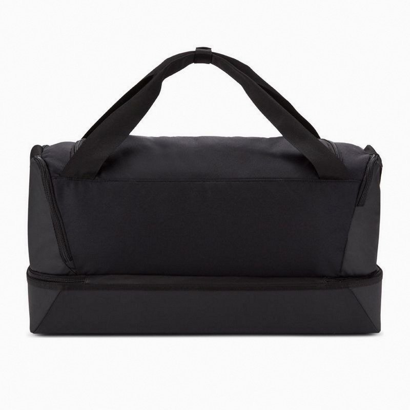 Nike Academy Team Hardcase Medium * The main chamber is extremely capacious * Reinforced bottom (length) × 30 cm (width) × 28 cm (height) * Color: The black Nike Academy Team Hardcase bag has a durable construction and allows you to maintain order. The reinforced bottom additionally protects the content, and numerous attachments allow you to move football equipment in different ways. The main chamber is extremely roomy. The hard bottom protects the equipment from impacts and scratches. Thanks to the zipper fastened with the lower partition, dry or wet equipment remains clean and orderly. The handles can be joined to wear a bag in a different way.