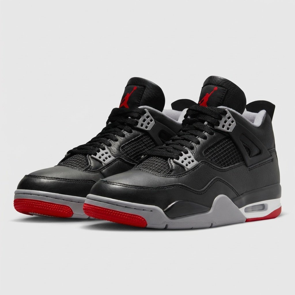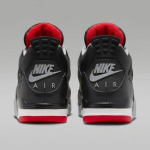 Air Jordan 4 „Bred Reimagined” to współczesna interpretacja klasycznego modelu z 1989 roku. Buty wykonano z wysokiej jakości skóry naturalnej w czarnym kolorze, uzupełnionej tekstylną siatką i czerwonymi detalami. Charakterystyczna konstrukcja z widoczną poduszką powietrzną Air w podeszwie środkowej zapewnia amortyzację podczas chodzenia.