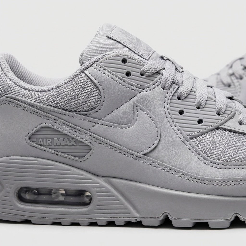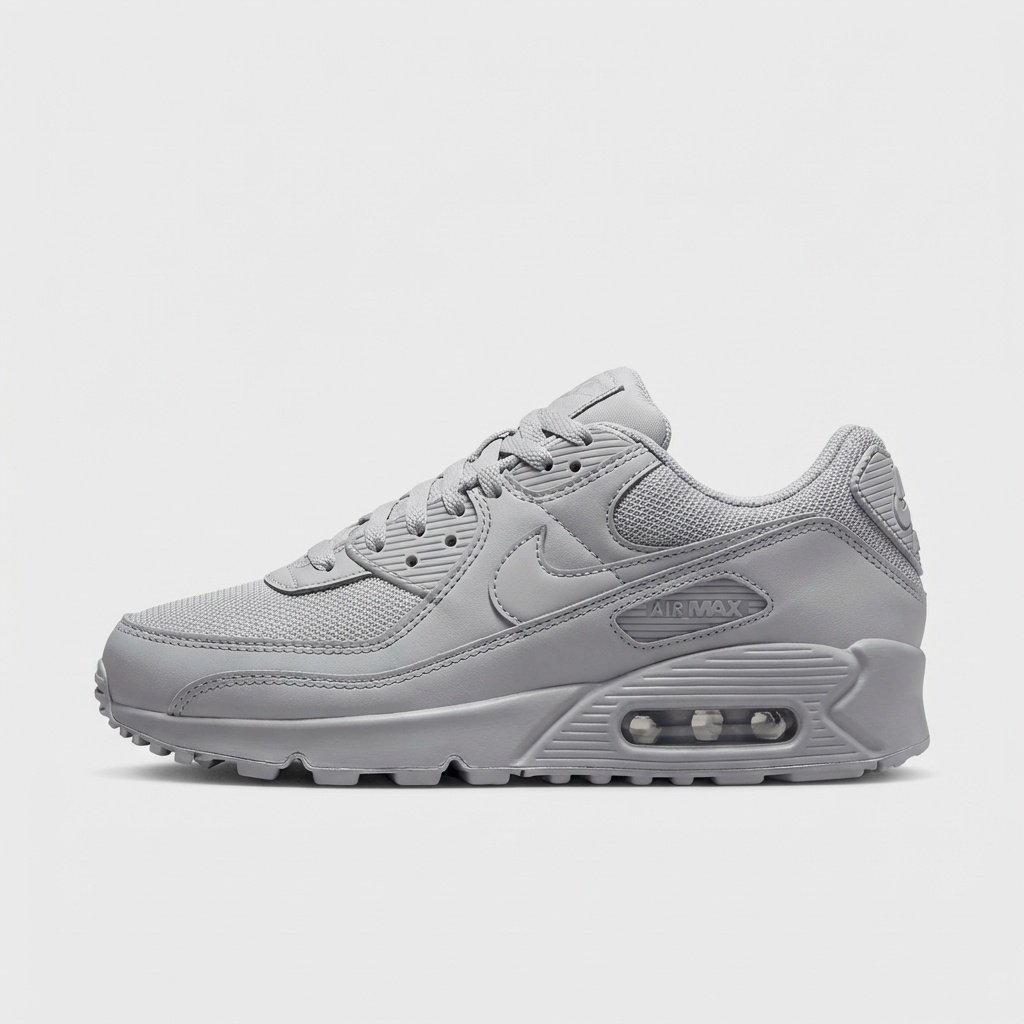 Buty Nike Air Max 90 w wersji Recraft Wolf Grey to klasyczny model z ikoniczną sylwetką z lat 90. Wykonane z połączenia skóry, materiałów tekstylnych i tworzywa sztucznego w stonowanej szarej kolorystyce. Charakterystyczna podeszwa z technologią Air Max oferuje widoczną komorę powietrzną w części pięty.