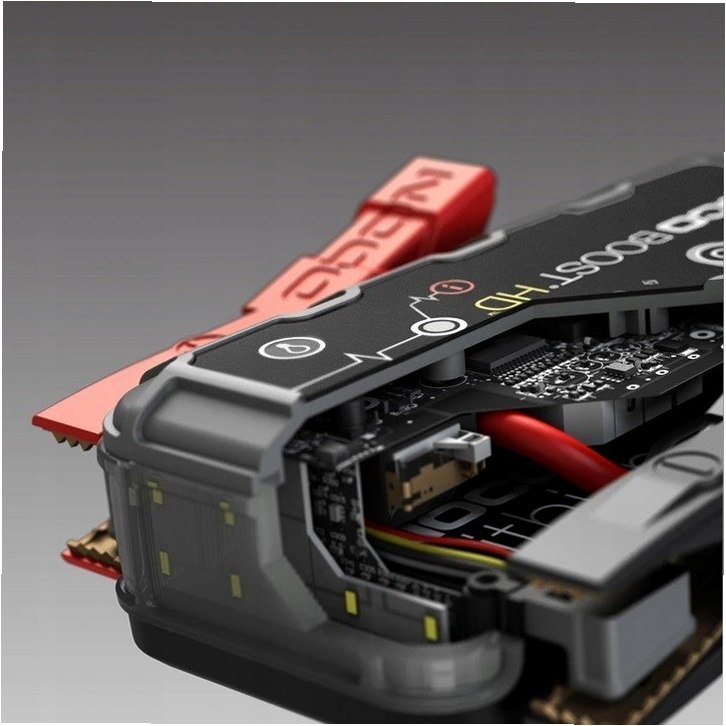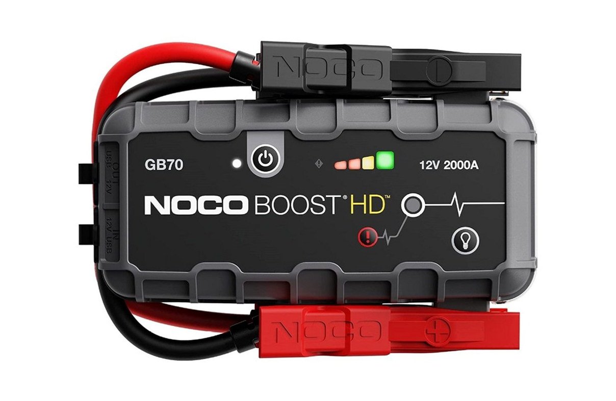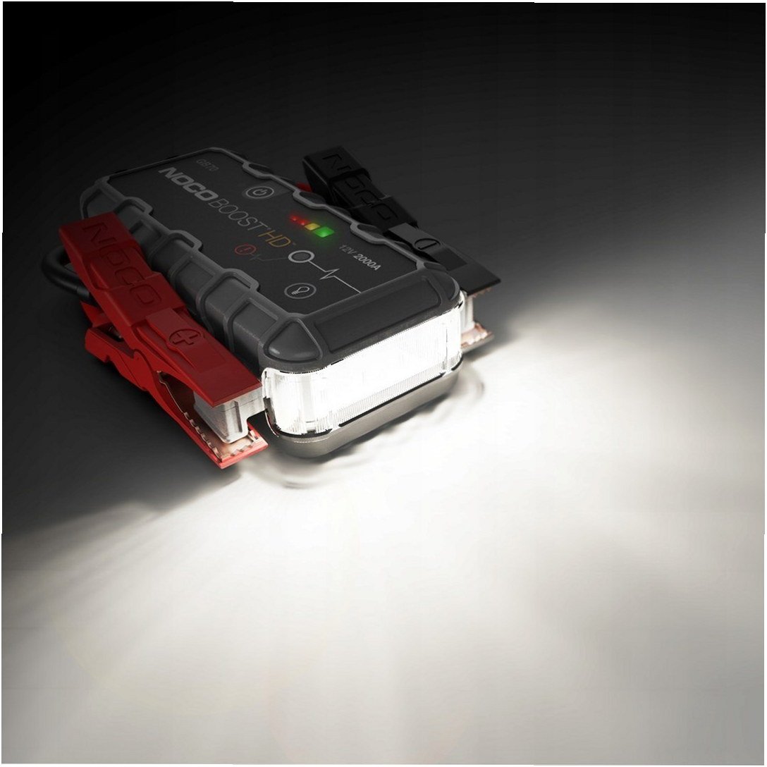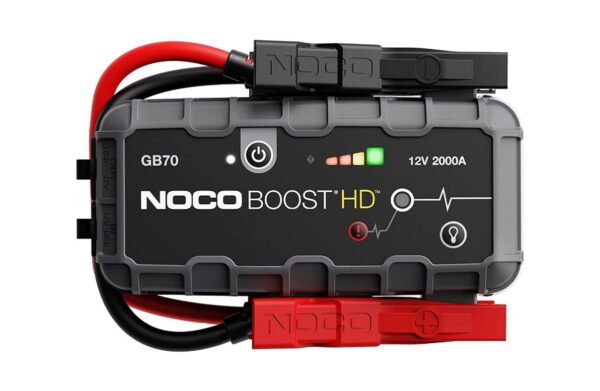 NOCO GB70 2000A jump starter for petrol and diesel engines. Safety features, waterproof design, power bank functionality, and 7 lighting modes.