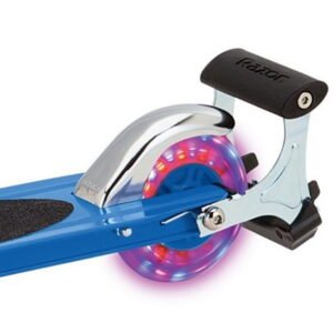 The Razor S spark scooter is a classic model suitable for children aged 8 and older. Crafted from sturdy steel, it offers both durability and stability. This scooter features a convenient foldable design for easy storage and transportation. Parents will appreciate the inclusion of a foot brake, which ensures safe stopping. With a maximum weight capacity of 100 kg, it is designed to accommodate a range of users. Its dimensions measure 630 mm in depth, 288 mm in width, and 595 mm in height, enhancing user comfort during ride time.