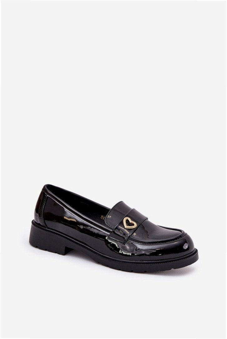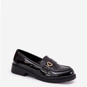 Model HY51-379 to mokasyny damskie o eleganckiej konstrukcji wsuwanej wykonane ze skóry ekologicznej w kolorze czarnym. Cholewka o wysokości 5.5 cm ma zaokrąglony nosek i ozdobny detal w formie metalicznego serduszka umieszczony na pasku przednim. Wkładka z eko skóry wspiera komfort użytkowania podczas codziennego noszenia. Obcas o wysokości 3.5 cm stanowi integralny element konstrukcji zapewniający równomierne rozłożenie nacisku. Podeszwa wykonana z lekkiego tworzywa syntetycznego zapewnia elastyczność i amortyzację przy kontakcie z podłożem. Profil wsuwany bez zapięcia ułatwia zakładanie, a klasyczna budowa dostosowana jest do stylizacji casualowych i biurowych. Odpowiednie dopasowanie do długości stopy uzyskano poprzez standardową numerację w zakresie europejskich rozmiarów 36–41 z długością wkładki od 23.5 do 26.5 cm.
