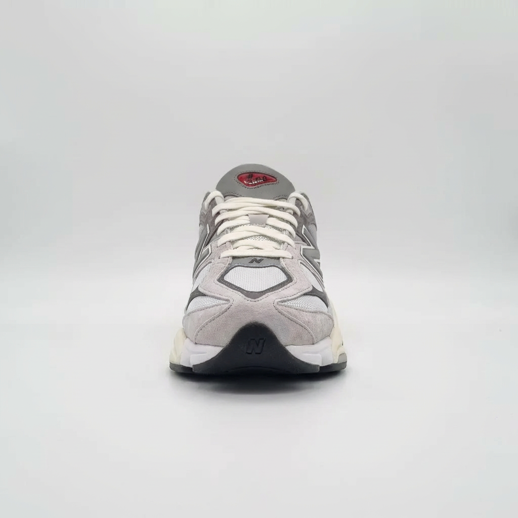 Sneakersy New Balance GC9060GY Rain Cloud Grey to niskie buty unisex łączące futurystyczny design inspirowany latami 90. z zaawansowaną technologią amortyzacji. Cholewka wykonana z kombinacji materiałów syntetycznych, siateczki oraz elementów zamszowych zapewnia optymalną wentylację i trwałość. Charakterystyczny wielowarstwowy design z wyrazistymi liniami tworzy nowoczesny akcent stylistyczny. Podeszwa środkowa z pianki EVA oferuje doskonałą amortyzację i zwrot energii przy każdym kroku.