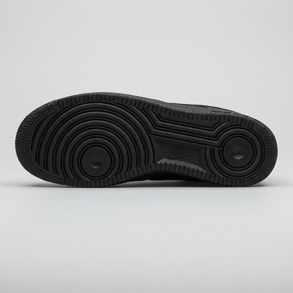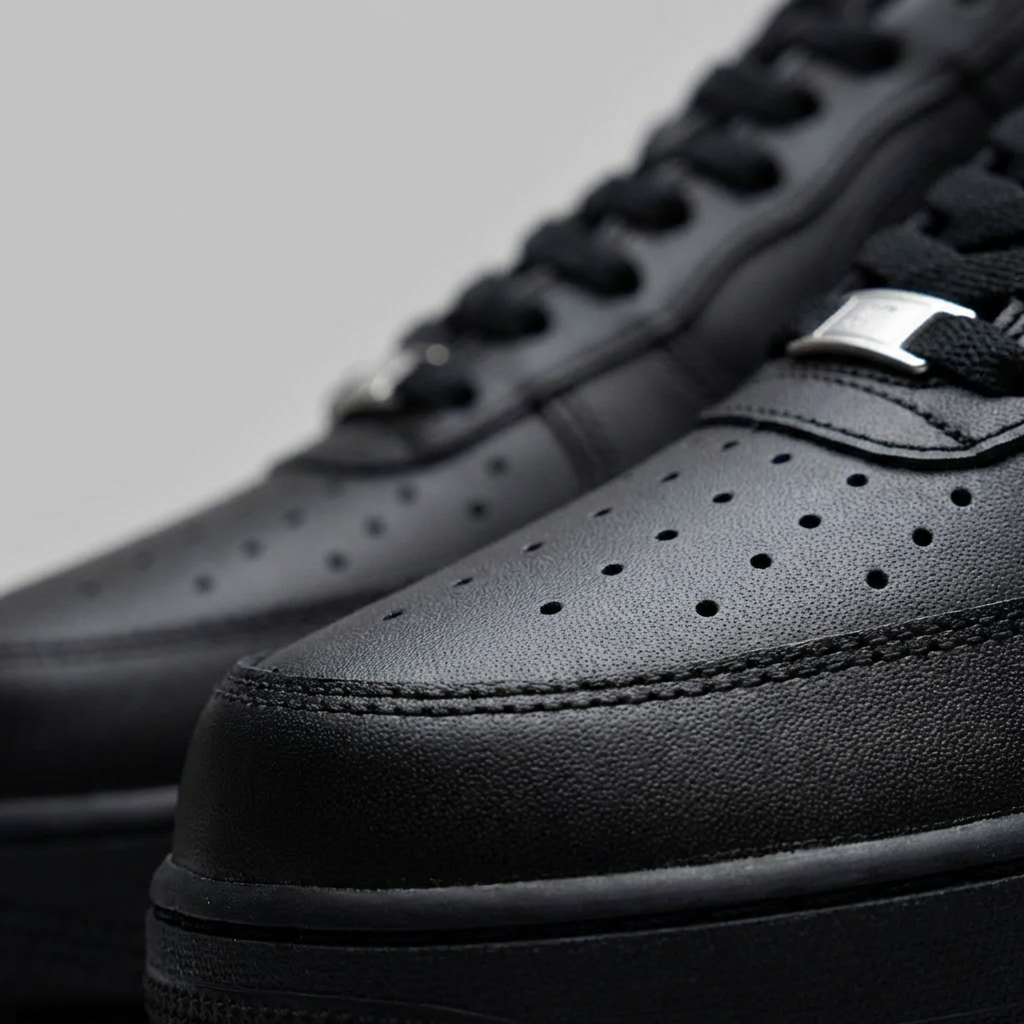 Sneakersy Nike Air Force 1 Low 07 Triple Black to kultowy model w całkowicie czarnej kolorystyce wykonany z wysokiej jakości skóry naturalnej. Charakteryzuje się niską cholewką sięgającą poniżej kostki oraz perforacjami na bocznych panelach zapewniającymi wentylację. Technologia Air-Sole w części pięty gwarantuje doskonałą amortyzację i komfort użytkowania przez cały dzień. Uniwersalny czarny kolor sprawia, że buty pasują do szerokich gamą stylizacji od casualowych po eleganckie zestawy.
