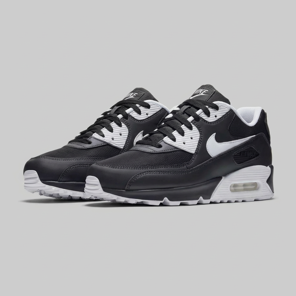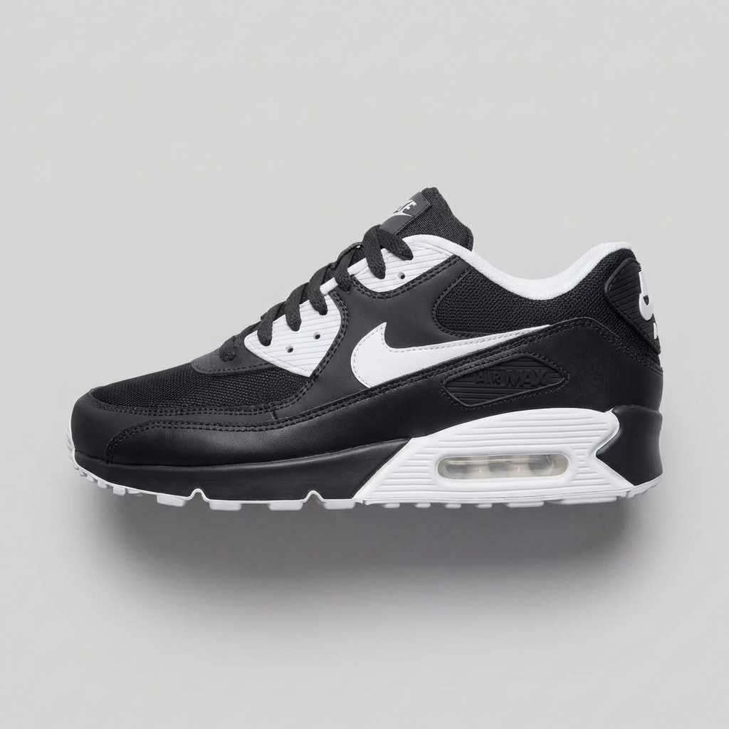 Sneakersy Nike Air Max 90 Essential to kultowa sylwetka łącząca klasyczny design lat 90. z nowoczesnymi rozwiązaniami technologicznymi. Cholewka wykonana ze skóry syntetycznej, siatki mesh i elementów tekstylnych zapewnia trwałość i oddychalność. Charakterystyczna sylwetka z wyraźnie zarysowanymi liniami i kontrastowym zestawieniem kolorystycznym Black/White stanowi uniwersalną bazę do różnych stylizacji. Rewolucyjna technologia amortyzacji Air Max z widoczną komorą powietrzną w podeszwie zapewnia komfort podczas chodzenia i długotrwałego noszenia.