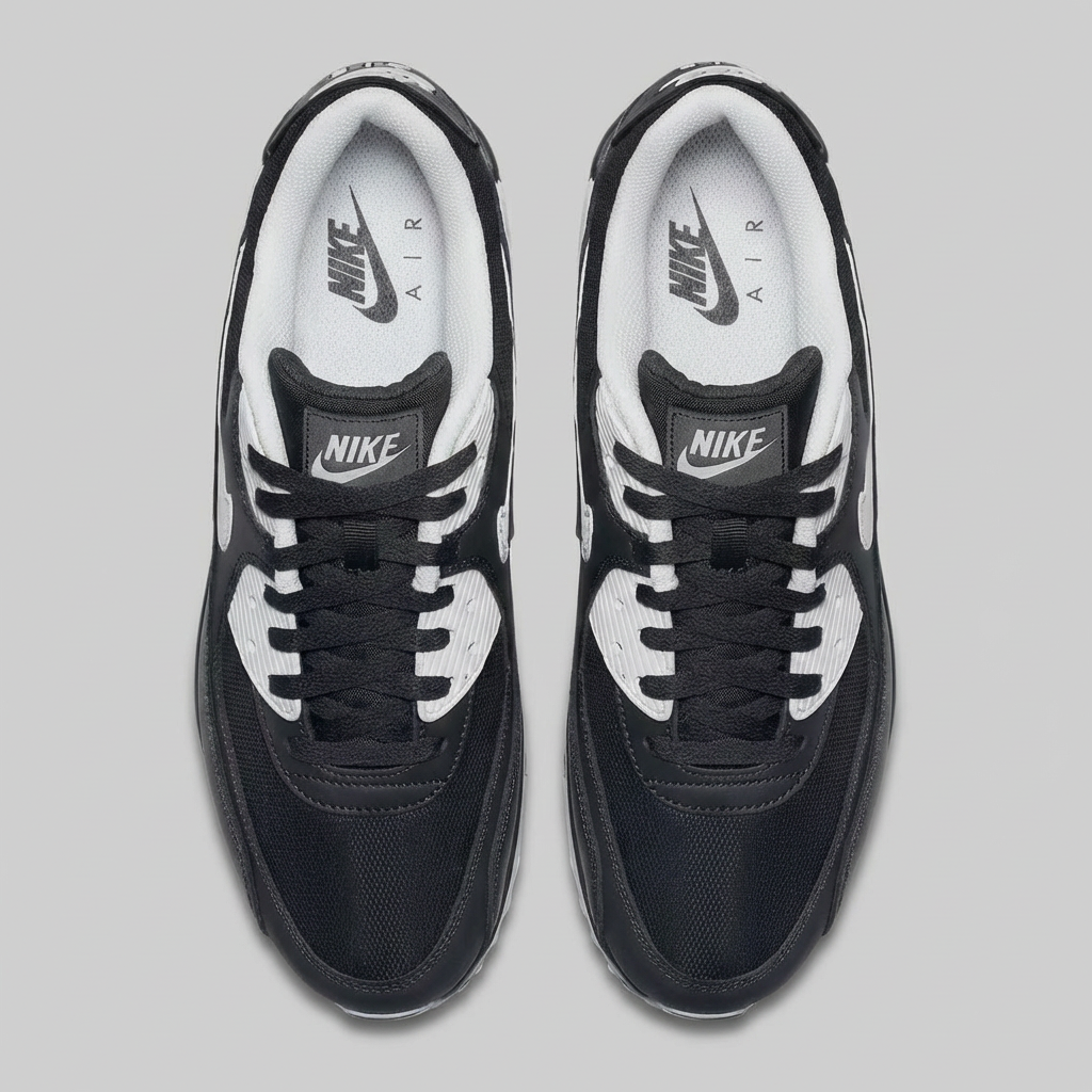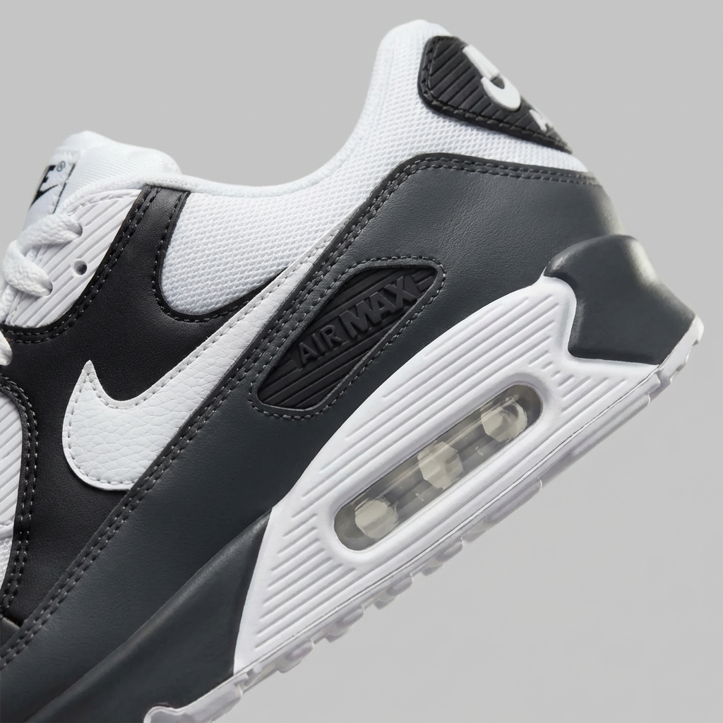Charakterystyczna sylwetka z wyraźnie zarysowanymi liniami definiuje streetwearową estetykę · Biały Swoosh i akcenty na pięcie tworzą charakterystyczny kontrast z główną kolorystyką · Klasyczny design lat 90. w uniwersalnej kolorystyce Black/White · Kontrastowe zestawienie kolorystyczne nadaje butom dynamiczny wygląd