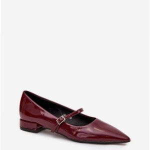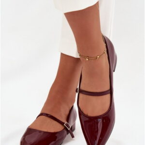 Model Isvella QQ-269 to damskie baleriny o klasycznej konstrukcji z lakierowanej skóry ekologicznej w kolorze bordo. Cholewka o smukłym profilu posiada pasek stabilizujący na śródstopiu, który łączy funkcję ozdobną z użytkową. Wkładka wykonana z tego samego materiału zapewnia spójność konstrukcyjną i jednolite wykończenie wnętrza. Obcas o wysokości 2,5 cm wbudowany w podeszwę utrzymuje naturalne ułożenie stopy. Podeszwa wykonana z syntetycznego tworzywa charakteryzuje się elastycznością i odpornością na ścieranie. Szpiczasty nosek został zaprojektowany z myślą o optycznym wydłużeniu linii stopy, zapewniając estetyczny wygląd. Konstrukcja typu slip-on umożliwia szybkie zakładanie i zdejmowanie, a niska wysokość cholewki sprzyja komfortowi użytkowania w codziennych warunkach miejskich oraz w stylizacjach o charakterze formalnym.
