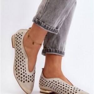 Model Zazoo 2883/004 to damskie baleriny o konstrukcji niskoprofilowej wykonane ze skóry naturalnej w kolorze złotym. Cholewka posiada ażurowe perforacje zwiększające przewiewność oraz migdałowy kształt noska. Skórzana wkładka wewnętrzna odpowiada za utrzymanie optymalnego mikroklimatu wewnątrz obuwia. Konstrukcja osadzona jest na cienkiej podeszwie o klasycznym profilu zapewniającym elastyczność oraz stabilność kroku. Wysokość cholewki wynosi około 6 cm, co zachowuje charakterystyczny niski fason typowy dla balerin. Model przeznaczony jest do użytku codziennego w warunkach miejskich i lekkich stylizacjach wiosenno-letnich.