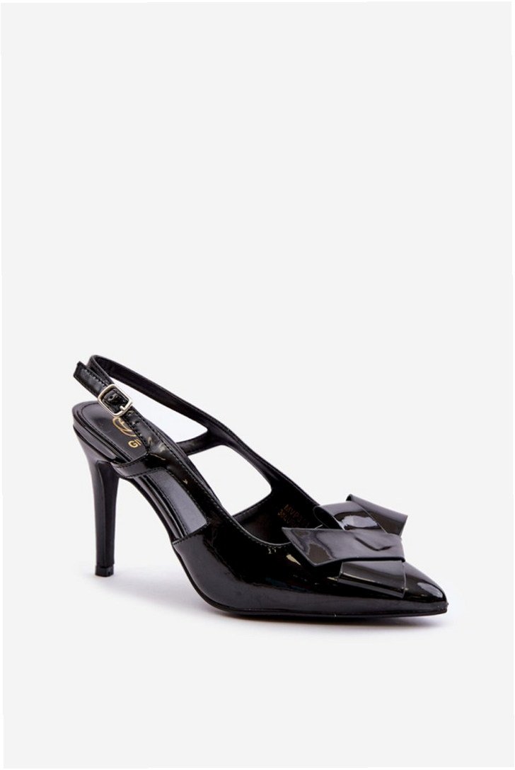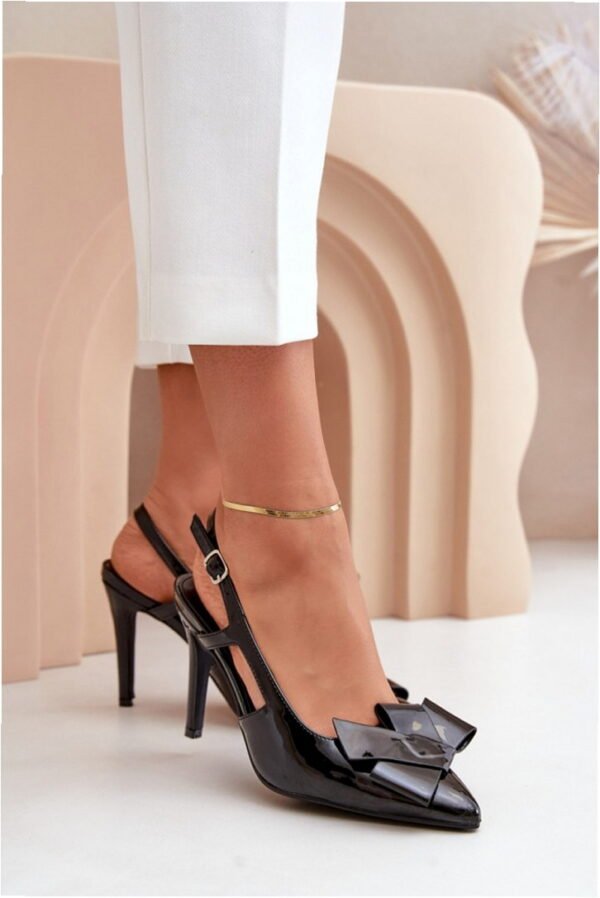 Step in style’s elegant Auroravia MVP351 high heels are crafted from patent eco leather. Featuring pointed toes for an elongated leg effect, and an adjustable strap with a buckle for a perfect fit. The front is adorned with a striking embellishment that adds bold character. Perfect for pairing with elegant dresses or evening outfits. Available in black.
