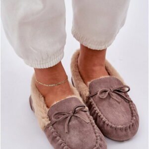 Model Kleogoria MD1037-7 to kapcie typu mokasynowego wykonane z miękkiego eko zamszu w kolorze Dark Beige. Konstrukcja o wysokości cholewki 6 cm i podeszwie 1 cm zapewnia komfortowe użytkowanie w warunkach domowych. Wnętrze wyściełane futerkiem syntetycznym oferuje izolację cieplną i przyjemną miękkość podczas użytkowania. Cholewka wykonana z mikrowłókien imitujących skórę zamszową charakteryzuje się elastycznością i lekkością, co wpływa na komfort noszenia. Podeszwa z tworzywa syntetycznego ma gładką strukturę i zapewnia podstawową przyczepność na gładkich powierzchniach. Całość uzupełnia klasyczne sznurowanie typu slip-on bez wiązań, umożliwiające szybkie zakładanie. Obuwie przeznaczone jest do użytku domowego w warunkach o umiarkowanej temperaturze.