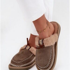 Model Perivelle 608 to kapcie damskie o klasycznej konstrukcji wsuwanej, wykonane z miękkiego eko zamszu w kolorystyce Green. Cholewka modelu zdobiona jest subtelnym haftem, a wewnętrzna część wyścielona została gęstym futerkiem syntetycznym. Konstrukcja zapewnia komfort termiczny i elastyczność podczas użytkowania w pomieszczeniach. Środkowa warstwa podeszwy została wykonana z elastycznego tworzywa, utrzymując wysokość 2 cm, co pozwala na stabilne oparcie stopy. Podeszwa zewnętrzna z materiału syntetycznego o drobnym żebrowaniu zwiększa przyczepność do gładkich powierzchni domowych. Model posiada zamkniętą konstrukcję przedniej części i profilowaną wyściółkę futerkową dla lepszego dopasowania. Kapcie przeznaczone są do codziennego użytkowania wewnątrz pomieszczeń.