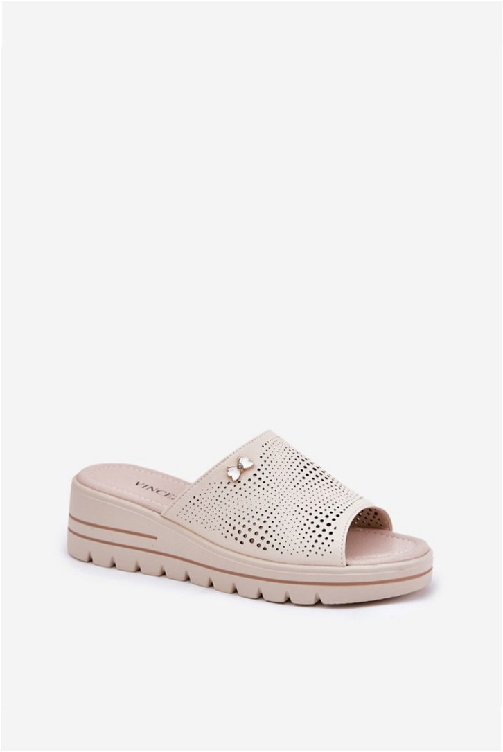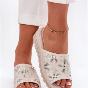 Step In Style Klapki Skórzane na Koturnie | Vinceza 41477 Beige Damskie