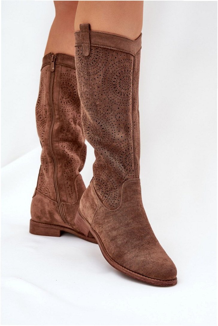 Model S.Barski HY51-860 to damskie kozaki wykonane z eko zamszu o cholewce sięgającej 36 cm. Konstrukcja oparta na płaskim obcasie o wysokości 3 cm zapewnia stabilność podczas chodzenia. Wkładka ze skóry ekologicznej zwiększa komfort użytkowania, a zaokrąglony nosek podkreśla klasyczną linię obuwia. Cholewka została ukształtowana w smukłym profilu, umożliwiając dopasowanie do łydki. Materiał eko zamsz charakteryzuje się miękką strukturą i matowym wykończeniem. Podeszwa wykonana z trwałego materiału syntetycznego posiada właściwości antypoślizgowe. Kozaki przeznaczone są do zastosowań miejskich oraz do wykorzystania w sezonach przejściowych.