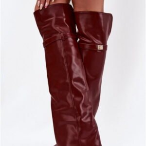 Model Serelle CLS-593 to kozaki damskie o wysokiej cholewce, wykonane ze skóry ekologicznej w kolorze bordo. Cholewka sięga za kolano, a jej wywinięta konstrukcja nadaje całości klasyczny profil. Wnętrze oraz wkładka wyłożone są kocem obuwniczym, który zapewnia izolację termiczną w warunkach chłodnej pogody. Stabilny obcas typu słupek o wysokości 11 cm wykonany jest z trwałego materiału syntetycznego, zapewniającego odpowiednie rozłożenie ciężaru. Konstrukcja wsuwana bez zapięcia pozwala na szybkie zakładanie i dopasowanie do łydki. Czubek w kształcie szpica podkreśla smukły kontur. Wysokość cholewki wynosi 50 cm, co zapewnia osłonę przed chłodem. Model przeznaczony do użytku miejskiego w sezonie jesienno-zimowym.