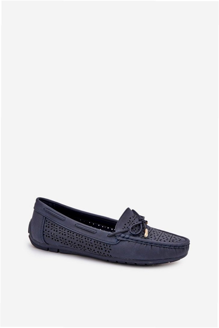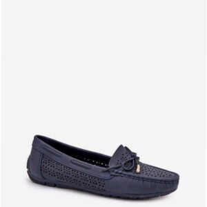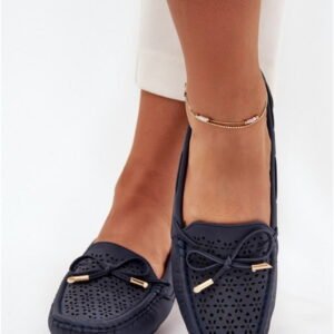 Model Mirisa VG250 to damskie mokasyny o konstrukcji typu slip-on wykonane z eko skóry w kolorze Navy. Wierzch buta zdobi ażurowy wzór oraz wiązanie w formie kokardki umieszczone na przednim panelu. Konstrukcja cholewki o wysokości 5.5 cm z zaokrąglonym noskiem zapewnia swobodę ruchu palców i naturalne dopasowanie. Wkładka z miękkiej eko skóry odpowiada za komfort użytkowania, ograniczając punktowy nacisk na śródstopie. Podeszwa o wysokości 1 cm wykonana z lekkiego tworzywa zapewnia elastyczność i płynne przetaczanie stopy. Niska cholewka umożliwia łatwe zakładanie oraz użytkowanie w sezonie wiosenno-letnim. Model przeznaczony do codziennego noszenia w stylizacjach casualowych.