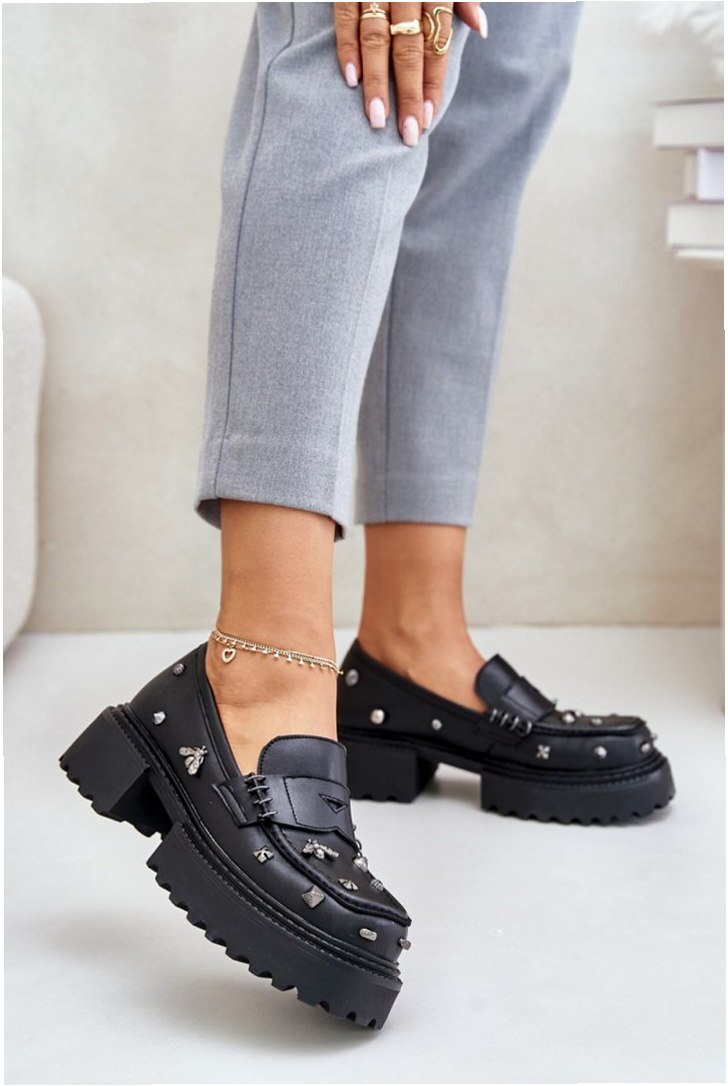 Model DA MR880-102 to półbuty o konstrukcji klasycznej z naturalnej skóry w kolorze czarnym. Zastosowano pełną skórzaną cholewkę i wewnętrzną wkładkę skórzaną zwiększającą komfort użytkowania. Obuwie osadzone jest na stabilnej platformie o wysokości 3 cm oraz obcasie 4.5 cm wykonanym z tworzywa o podwyższonej odporności na ścieranie. Wysokość cholewki wynosi 6 cm, co zapewnia osłonę stopy w codziennym użytkowaniu. Konstrukcja wzmacniana przeszyciami utrwala kształt i podnosi trwałość. Podeszwa o jednolitej strukturze gwarantuje pewny kontakt z podłożem w warunkach miejskich. Zapięcie tradycyjne umożliwia dopasowanie do podbicia. Model przeznaczony jest do zastosowań codziennych i formalnych, łącząc klasyczną linię z nowoczesnym wykończeniem.