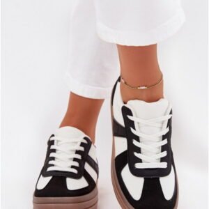 Model Sivirae X3032 to buty sportowe typu sneakers wykonane z eko skóry w kolorystyce White/Black. Konstrukcja low-top z cholewką o wysokości 7 cm zapewnia wsparcie w strefie śródstopia. Wierzchnia warstwa wykonana ze skóry ekologicznej charakteryzuje się gładką strukturą i łatwością czyszczenia. Panelowa budowa z klasycznym szyciem wzmacnia trwałość połączeń. Wkładka z pianki, pokryta tkaniną, zwiększa miękkość kontaktu ze stopą i poprawia komfort podczas dłuższego użytkowania. Podeszwa platformowa o wysokości 4 cm wykonana z lekkiego tworzywa amortyzuje kroki i stabilizuje całą konstrukcję. Spód z gumy o drobnej rzeźbie zapewnia przyczepność na płaskich nawierzchniach i odporność na ścieranie. Sznurowane zapięcie umożliwia precyzyjne dopasowanie obwodu. Model przeznaczony jest do codziennego użytku miejskiego w warunkach suchych.