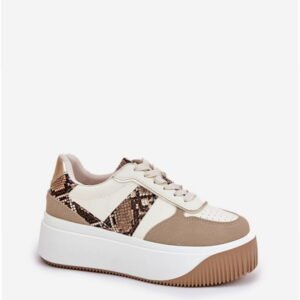 Model Telanila PL360 to damskie sneakersy wykonane ze skóry ekologicznej w beżowej kolorystyce. Konstrukcja low-top o wysokości cholewki 8 cm łączy klasyczny profil z podwyższoną platformą. Górna część cholewki składa się z paneli łączonych przeszyciami, co zwiększa trwałość i stabilność strukturalną. Wkładka z pianki, pokryta tkaniną, zapewnia amortyzację kontaktową i miękkość wewnętrzną podczas chodzenia. Podeszwa z tworzywa o podwyższonej gęstości tworzy 5-centymetrową platformę, która zwiększa izolację od podłoża i równomiernie rozkłada nacisk. Zaokrąglony nosek i tradycyjny system sznurowania umożliwiają dopasowanie do stopy. Obuwie przeznaczone do codziennego użytku miejskiego, łączące trwałość z modowym charakterem w konstrukcji o zwiększonej wysokości podeszwy.