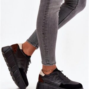 Model Vinceza 58565 to damskie sneakersy o konstrukcji low-top wykonane z połączenia skóry ekologicznej i tkaniny w kolorystyce Black. Zastosowana platforma ma wysokość 5 cm, zapewniając stabilność i nowoczesną estetykę. Cholewka łączy materiały syntetyczne z tekstylnymi panelami zwiększającymi trwałość i przewiewność. Wkładka ze skóry naturalnej dopasowuje się do kształtu stopy, ograniczając nacisk punktowy. Podeszwa środkowa wykonana jest z pianki o średniej gęstości, amortyzującej kontakt z podłożem i wspierającej stopę w ruchu. Podeszwa zewnętrzna z gumowego tworzywa zapewnia przyczepność na miejskich nawierzchniach i odporność na ścieranie. Klasyczne sznurowanie umożliwia precyzyjne dopasowanie, a profil low-top nie ogranicza zakresu ruchu stawu skokowego. Konstrukcja przeznaczona jest do codziennego użytkowania w warunkach miejskich.