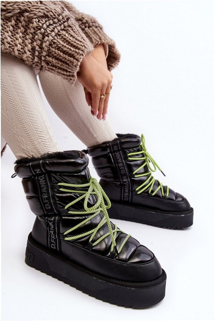 Model D.Franklin DFSH371007 to śniegowce damskie wykonane z wegańskiej, wodoodpornej tkaniny o podwyższonej odporności na wilgoć. Konstrukcja o wysokości cholewki 19 cm chroni stopy przed chłodem i zapewnia stabilizację w warunkach zimowych. Wnętrze w całości ocieplone jest futerkiem syntetycznym o gęstej strukturze, które pełni funkcję izolacyjną i poprawia komfort termiczny. Podeszwa osadzona na 4,5 cm platformie z materiału o właściwościach antypoślizgowych zwiększa przyczepność na mokrej nawierzchni i śniegu. Środkowa warstwa pianki amortyzującej stabilizuje sylwetkę podczas chodzenia na nierównych powierzchniach. Wkładka pokryta miękkim futerkiem poprawia dopasowanie i utrzymuje ciepło w obszarze śródstopia. Buty przeznaczone są do codziennego użytkowania miejskiego w warunkach zimowych.