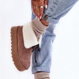 Wsuwane śniegowce z eko zamszu ocieplone kożuchem. Posiadają platformę o wysokości 4 cm i cholewkę 10 cm. Przeznaczone na mroźne, zimowe dni.