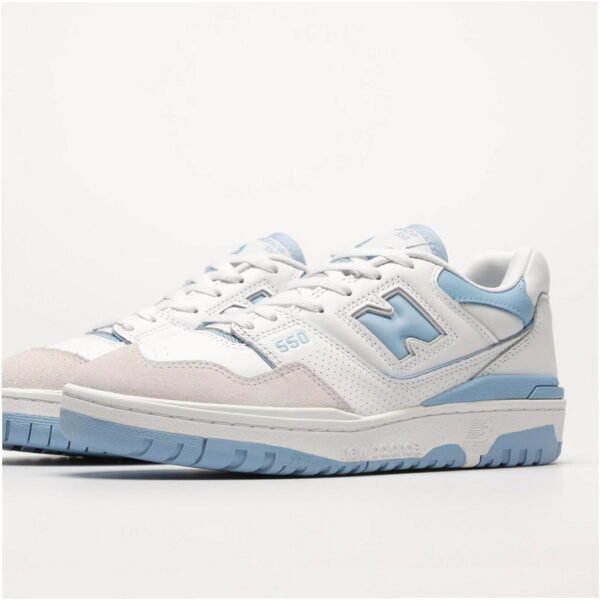 The New Balance 550 White Light Blue combines a heritage basketball style