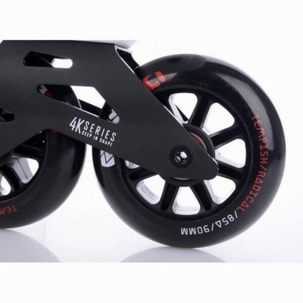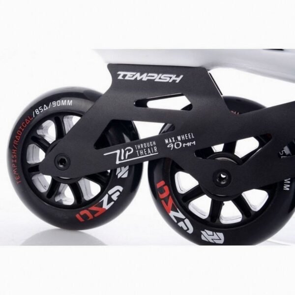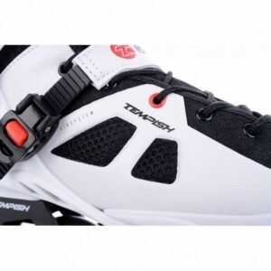 Tempish EZZA 90 Union rollers are intended for recreational, sports and fitness. They can transfer medium to heavy loads and are intended for both beginners and advanced, but also for experienced skaters. We still use a proven skeleton, which has an excellent shape and attractive design with a two -colored and two -layer cuff. The skeleton is medium height, the moving part above the joint is strengthened and consists of two separate parts. The lining uses a new Hot Press Seamless Cover technology, which allows the use of PVC material on the lining without sewing. It is stronger than plastics. It was also used at the top of the shoe, which can be much lower due to the fact that it does not have to be stapled and visually relieves the entire shoe. The lining also has anatomical parts around Achilles cubes and tendons. In addition, the anatomical insole makes the rollers really comfortable. The skids are made in CNC technology, attached to the skeleton using the middle screws, which allow the frame to deviate from the axis – for the perfect match to the driving style and a different anatomical structure of the user’s anatomical foot (entire leg) at the front and rear. The housing is really light but solid. The axles are always screwed on the right side of both rollers, which ensures safety – it is not possible for the universal Tempish brake “S” while riding on roller skates. The brake is located in a box, fastened with 4 screws. The brake assembly is actually very easy without the need to dismantle the axles and wheels. The brake handle material is nylon reinforced with glass fiber – really solid and durable. The brake block has an adjustable height and is made of TPR. EZZA 90 rollers are equipped with wheels from the Radical series – PU Casting (PUC), Super Hi -Rebound (SHR) are a high -quality wheel with very low rolling resistance and long life. Low consumption on various surfaces and excellent damping of unevenness ensures comfortable driving. The wheels are rotated on high quality precise ABEC 9 Chrome with a rubber pad. Locking with classic laces. Above the inside there is a strengthening tape with a micro buckle. Technical parameters Destiny of fitness, beginner, advanced, experienced skaters. Skin made in CNC aluminum alloy 6063, skeleton fastening system – Ideal Position Control combination size 90mm wheel hardness. PE / nylon shell, 3-piece, anatomical skeleton space for ankle, reinforced raised structure. Liner (internal sock) stiffened nylon / nylex, anatomical, reinforced with PVC elements. Brake in the set upper clamp clamp 45 degrees Blamra Blamra 8mm weight limit 100 kg