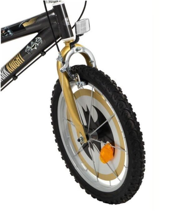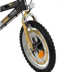 The TOIMSA TOI16913 16″ child bike in black featuring a Batman motif is perfect for children aged between 5 and 7 years, specifically designed for outdoor adventures. It boasts front and rear caliper brakes alongside 16″ inflatable wheels, ensuring a smooth and enjoyable ride. Additionally, the bike includes essential features such as reflective elements for safety, a chain guard, a bottle holder, and training wheels to provide extra stability. Made from robust steel and aluminium, this bike comes pre-assembled, making it ready for immediate use.