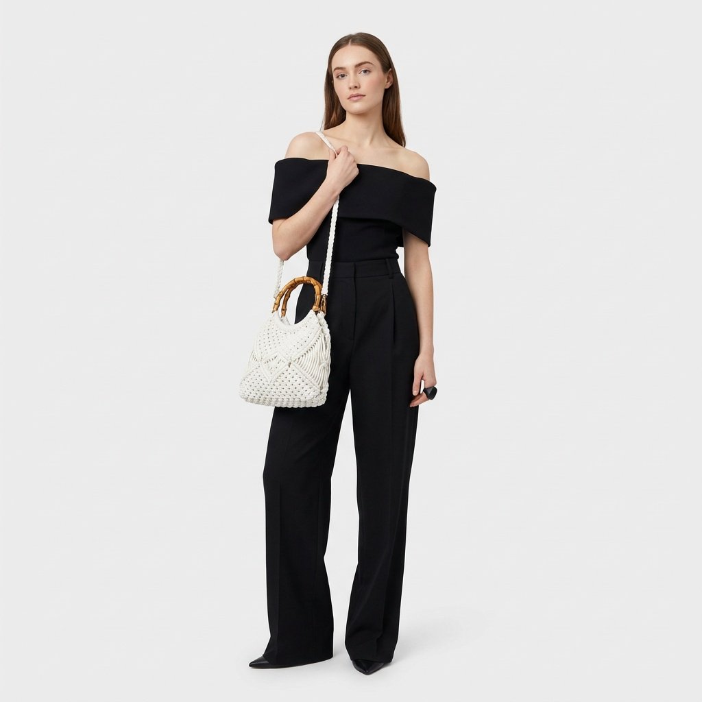 Doskonale komponuje się z letnimi sukienkami, lnianymi spodniami i bawełnianymi topami w naturalnych kolorach. Idealny dodatek do stylizacji wakacyjnych, spacerów po plaży lub miejskich spotkań w ciepłe dni. Bambusowa rączka dodaje egzotycznego charakteru całej kreacji.