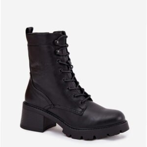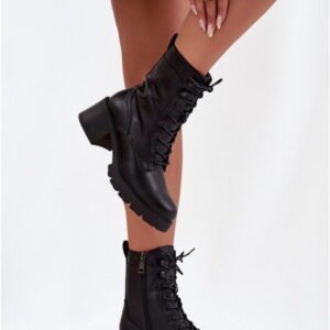 Model Vinceza 89136 to damskie botki o klasycznej konstrukcji ankle boots wykonane ze skóry ekologicznej w kolorze czarnym. Wnętrze oraz wkładka zostały pokryte miękkim kocem obuwniczym, który działa jako warstwa termoizolacyjna. Cholewka o wysokości 17,5 cm osadzona jest na stabilnym obcasie typu klocek o wysokości 6 cm. Konstrukcja łączy sznurowanie z bocznym zamkiem, co umożliwia dopasowanie do kształtu stopy oraz szybkie zakładanie. Podeszwa wykonana z wytrzymałego tworzywa zapewnia przyczepność na gładkich powierzchniach. Delikatne tłoczenie na boku pełni funkcję ozdobną, zachowując elegancki charakter. Buty przeznaczone są do użytkowania w warunkach miejskich w sezonie jesienno-zimowym.