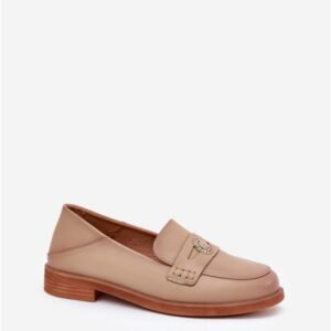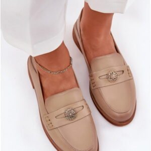 Model Vinceza 18100 to damskie mokasyny skórzane o konstrukcji low-top i beżowej kolorystyce. Cholewka wykonana jest ze skóry naturalnej o gładkiej fakturze z zaokrąglonym noskiem. Przód zdobi subtelny pasek z dekoracyjnym elementem. Wkładka z miękkiej skóry naturalnej odpowiada za komfort i higroskopijność podczas chodzenia. Obcas o wysokości 3 cm wykonany jest w konstrukcji płaskiej, co sprzyja stabilnemu ułożeniu stopy. Wysokość cholewki wynosi 6 cm, co zapewnia swobodne dopasowanie do podbicia. Podeszwa z tworzywa o dobrej elastyczności umożliwia naturalny zakres ruchu. Zapięcie wsuwane ułatwia zakładanie bez dodatkowych elementów regulujących. Model przeznaczony jest do codziennego użytkowania miejskiego i noszenia w warunkach casualowych.